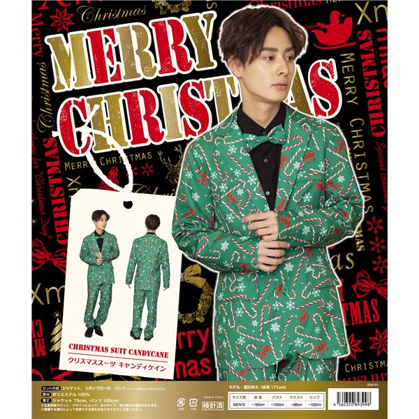 ■商品内容キャンディケイン柄が目を引くクリスマススーツ。