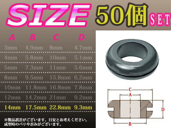 ラバーカバー 配線穴 カバー グロメット ブラック 黒 50個セット 14mm 新品【検索ワード:コード ケーブル ゴム ガード キット 水槽 アクアリウム 穴あけ 水漏れ 防止 エアレーション 分岐 船 ボート 水上バイク 配線 保護】